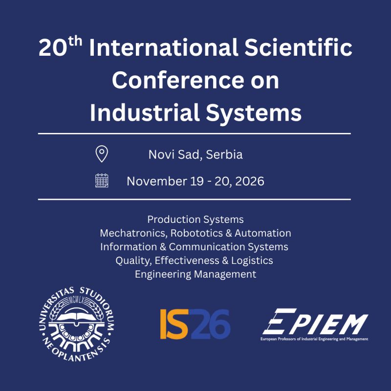 📢 Call for Papers | IS’26 — 20th International Scientific Conference on Industrial Systems